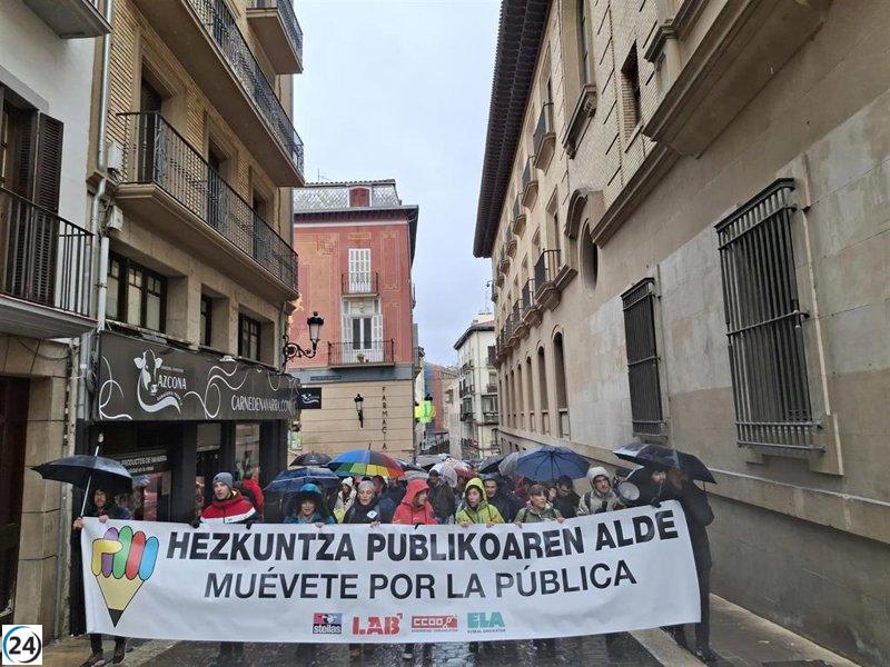 La jornada de protestas incluyó una manifestación que comenzó con una concentración en las instalaciones del Departamento de Educación. Docentes de diferentes puntos de Pamplona y su Comarca se unieron en una muestra de solidaridad y unidad, avanzando juntos por la cuesta de Santo Domingo, guiados por una pancarta que proclamaba el lema "Muévete por la pública".