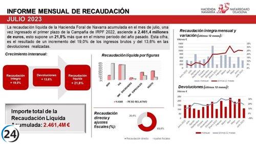 Hacienda Foral cierra julio con 2.461 millones de euros recaudados, un 21,8% más
