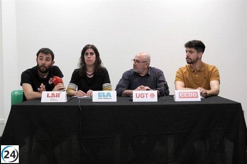 Sindicatos de Navarra convocan a paros y manifestaciones el 15 de octubre en solidaridad con Palestina.