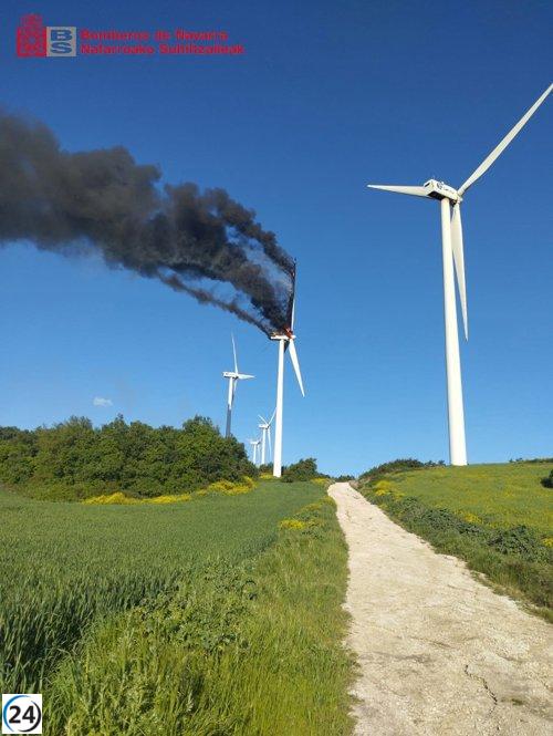 Fuego consume aerogenerador en parque eólico de Muruarte de Reta.