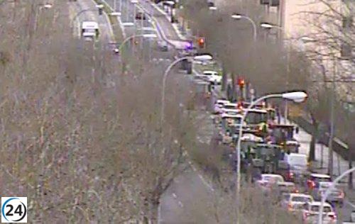 Tractores cortan avenida Baja Navarra en Pamplona en protesta.