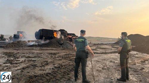 La Guardia Civil indaga sobre el fuego en una planta de reciclaje en Olite.