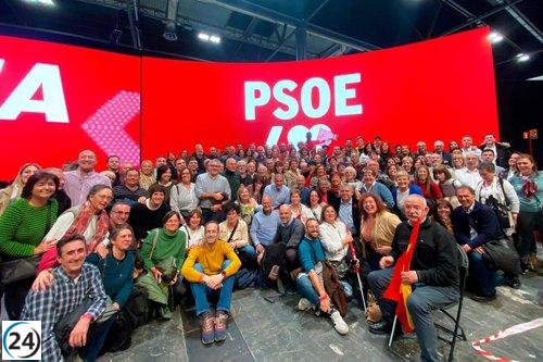 Un numeroso grupo de militantes socialistas navarros se une a un evento político del PSOE con Pedro Sánchez en la capital española