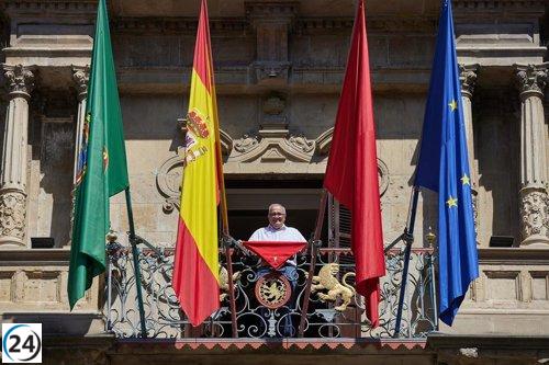 El presidente de Osasuna ensaya el lanzamiento del Chupinazo en el Ayuntamiento
