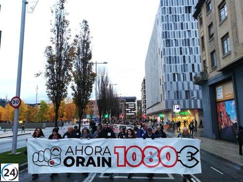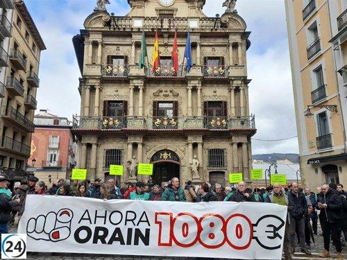 Manifestantes exigen al Gobierno de Navarra que garantice una pensión mínima de 1.080 euros.
