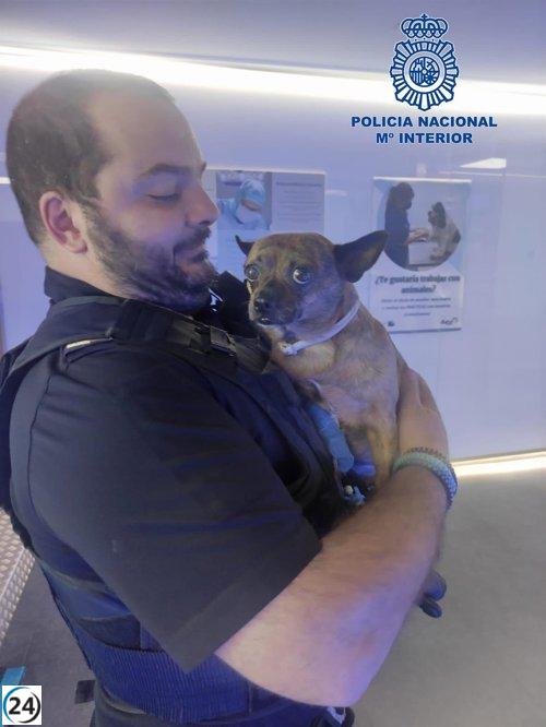 La Policía Nacional salva a un perro en un incendio en Burlada.