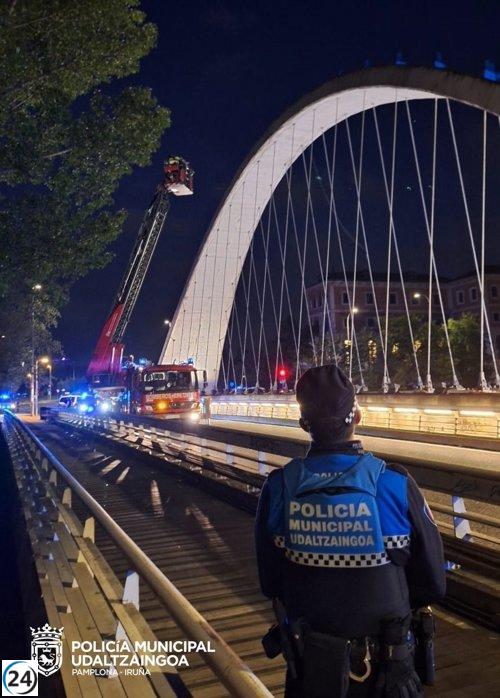 Dos jóvenes enfrentan denuncias por escalar el puente de las Oblatas en Pamplona.