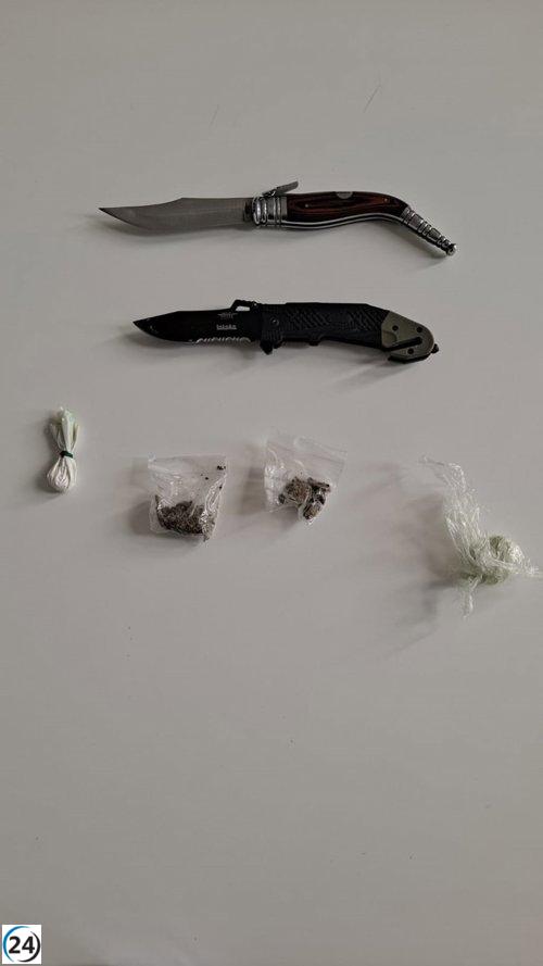 Agentes locales confiscan dos cuchillos en la estación de tren de Pamplona.